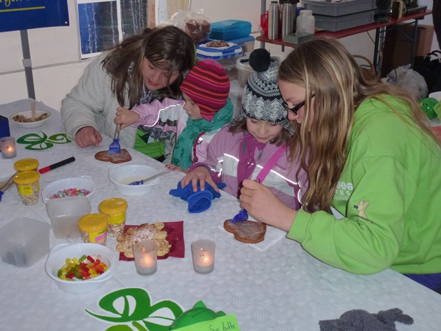 Auf dem Weihnachtsmarkt hatten wir dann unseren eigenen Stand. In zwei Schichten sorgten wir für Umsatz. Vor allem unsere „Lebkuchenwerkstatt“ war bei den Kindern sehr beliebt.