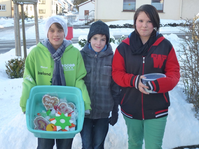 Da wir bei der Marktanalyse erfuhren, das gerade ältere Menschen gar nicht mehr auf den Weihnachtsmarkt gehen können, dachten wir uns, dass wir mit unseren Produkten einfach zu ihnen nach Hause gehen. So zogen wir wieder in Kleingruppen mit einem „Bauchladen“ durch die Straßen. Diese neue Geschäftsidee war finanziell auf jeden Fall ein Volltreffer.