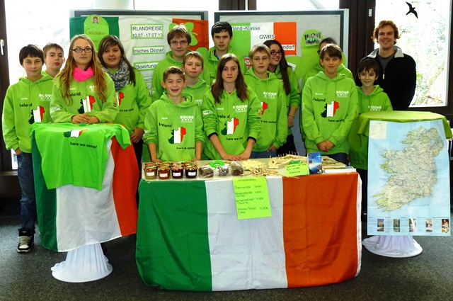 Wir, die Irland – Klasse der GWRS Villingendorf, sind der Einladung der IHK zur Schülerfirmenmesse gefolgt und so hatten wir mit unserer Schülerfirma einen eigenen Verkaufsstand. Zu Beginn der Veranstaltung stellte unser Vorstand unsere Firma mit ihren verschiedenen Abteilungen kurz vor und erzählte, welche Produkte und Dienstleistungen wir im Angebot haben. Im Anschluss fand dann ein „offener Markt“ statt. Immer abwechselnd betreuten drei Schüler unserer Firma unseren Verkaufsstand, an dem es irische Marmelade, irischen Porter – Cake, irische Schlüsselanhänger, Kerzenständer, Harfen sowie Kartenmaterial zu kaufen gab. Die restlichen Schüler konnten sich über die anderen Schülerfirmen informieren und dabei mit Schülern und Lehrern ins Gespräch kommen. Mit einem guten Erlös und neuen Ideen für unsere Firma machten wir uns nach einem sehr interessanten Tag wieder auf die Heimreise.