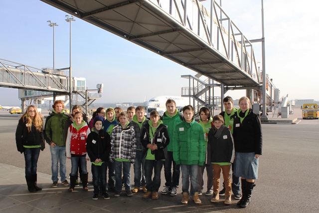 Am Dienstag, den 15.01.2013 starteten wir mit einem gemeinsamen Frühstück und machten uns dann auf den Weg zum Flughafen. Dort angekommen, bekamen wir zunächst einen kurzen Film über den Flughafen gezeigt. Anschließend durften wir in Begleitung eines Flughafenangestellten den kompletten Flughafen erkunden. Er führte uns durch die Sicherheitskontrolle und die verschiedenen Terminals. Wir fuhren wir mit einem Bus zur Flughafenfeuerwehr und konnten die riesigen Löschfahrzeuge bestaunen. Nachdem wir direkt an der Rollbahn stehend den Flugzeugen beim Starten und Landen zugeschaut haben, ging es über die Gepäckabfertigung wieder zurück ins Flughafengebäude, wo unser Rundgang endete.