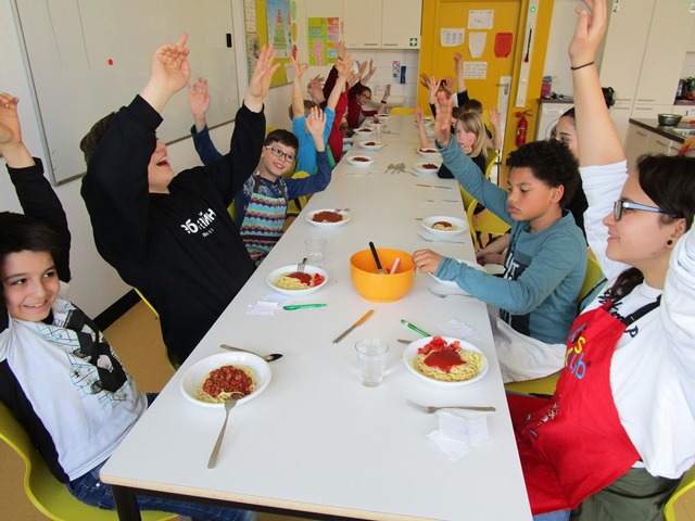 Am Mittwoch, 11.04.2018 wurde in der Kinderküche fleißig gekocht. Dieses Mal gab es Spaghetti Bolognese.