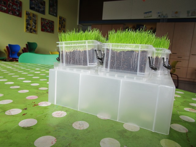 In der AG Frühlingserwachen durften einige Kinder ihr eigenes Ostergras anpflanzen und nun täglich beim Wachsen zuschauen.