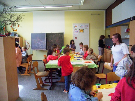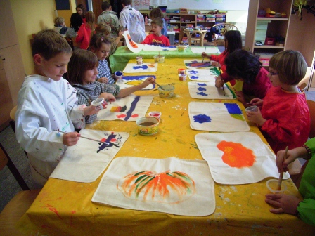 Auch am 16. Oktober 2013 fand wieder eine Mittwochsaktion statt, bei der die Kinder ihrer Kreativität freien Lauf lassen durften. Jedes Kind bekam ein Tischset welches mit Textilfarben bemalt werden durfte. Am Ende dieser Aktion waren es jede Menge kunterbunte und ganz individuell gestaltete Tischsets. Nach dem Bemalen der Tischsets gab es noch einen selbstgemachten Fruchtjoghurt für jedes Kind.