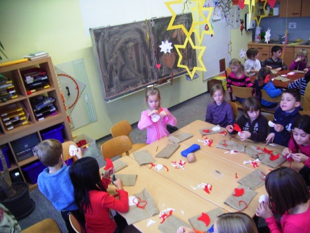 Am 04. Dezember 2013 fand die Mittwochsaktion unter dem Motto : „Nikolaus- Überraschung" statt, an der 42 Kinder teilnahmen. Jedes Kind dufte ein Nikolaussäckchen machen, welches anschließend mit Nüssen und Süßigkeiten gefüllt wurde. Nach dem Basteln der Säckchen gab es noch Lebkuchen und Tee für die Kinder. Am Ende diese Mittwochsaktion dufte dann jedes Kind sein eigenes Säckchen mit nach Hause nehmen. Organisiert und durchgeführt wurde diese Aktion von Sabine Flaig, Franziska Mink, Anja Maier, Christine Falk und den zwei Neuntklässlerinnen Lena Brenner und Celine Maier, die tatkräftig mitgeholfen haben.