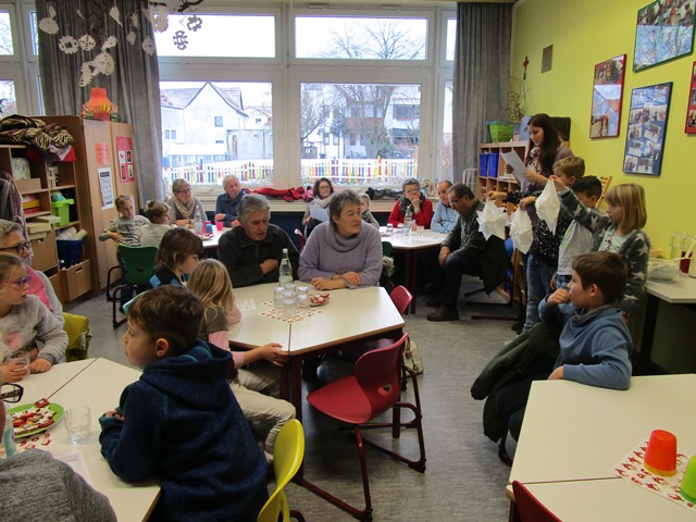 Gemeinsam wurde ein schönes Weihnachtslied gesungen. Bei leckerem Punsch und Tee sowie Lebkuchen und Plätzchen konnten sich die Kinder mit ihren Omas und Opas austauschen und Spiele spielen. Es war für alle ein sehr gemütlicher und besinnlicher Nachmittag.