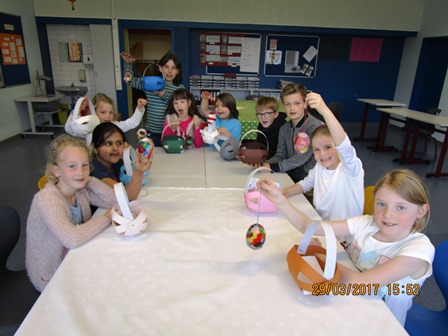 Am Mittwoch, den 21.03. stand die Mittwochsaktion unter dem Motto „Osterbasteln“. Unter der Anleitung von Frau Flaig und Frau Wolff wurden bunte Ostereier gefilzt, die das im Anschluss gebastelte Osternest füllten.
