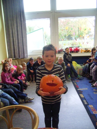 Bei der Mittwochsaktion am 23 Oktober drehte sich alles rund um das Thema Kürbis. Jedes Kind bekam einen eigenen kleinen Kürbis , welcher individuell mit Farbe bemalt werden durfte. So kamen am Ende ganz freundliche lustige Kürbisgesichter zum Vorscheinm aber auch gruselige schaurige Kürbisfratzen. Nach der gemeinsamen Gestaltung der Kürbisgesichter wurde eine Kürbissuppe zubereitet, bei der jedes Kind mithelfen durfte.
