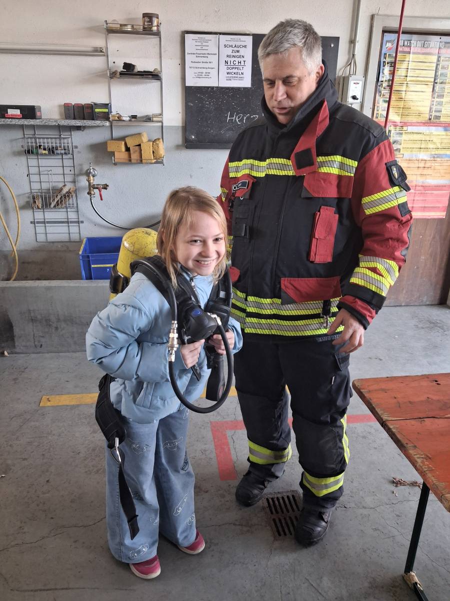 Die Highlights waren neben all den interessanten Infos das Anprobieren einer Sauerstoffflasche, das Hineinschlüpfen in die Feuerwehrkleidung und das Herumklettern im großen Feuerwehrauto ;-)  So macht Lernen besonders Spaß!