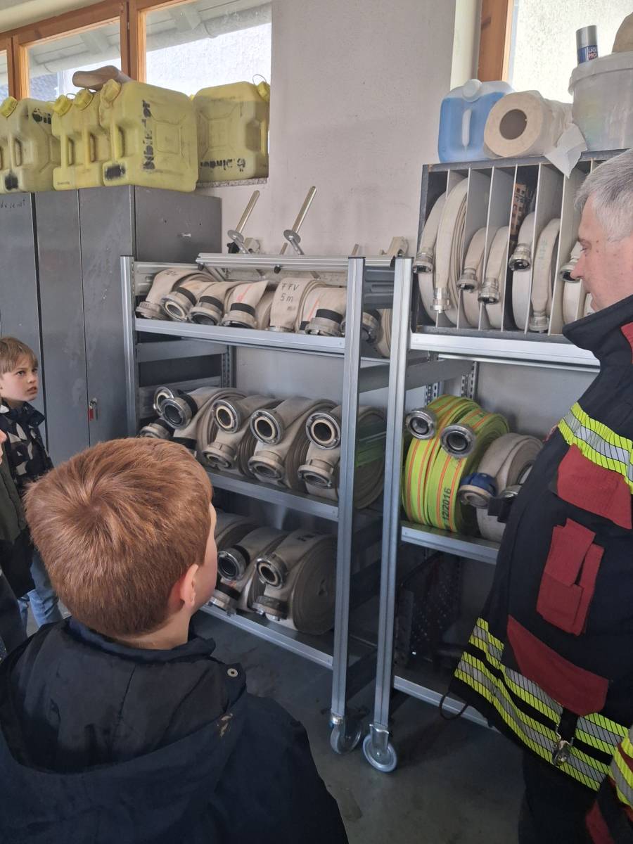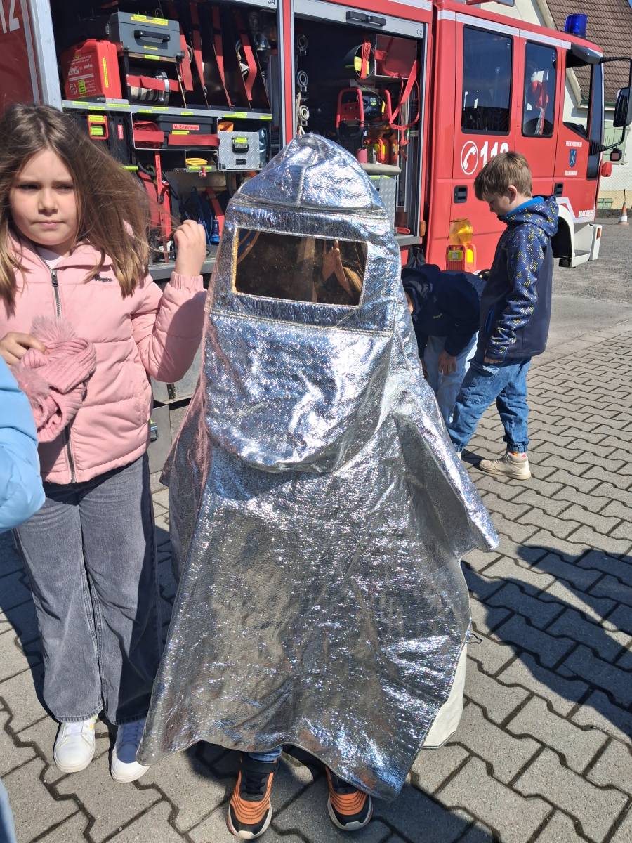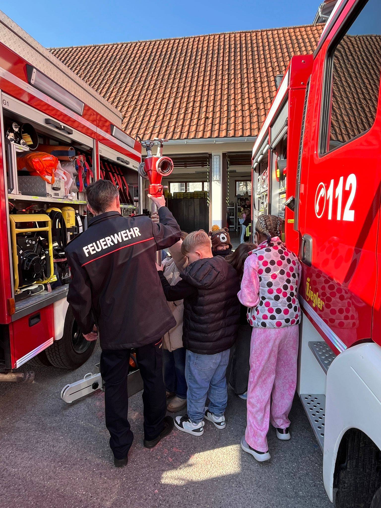 Nachdem schon im Unterricht gelernt wurde, wie man einen Notruf absetzt und welche Aufgaben zur Feuerwehr gehören, konnten die Kinder heute vor Ort weitere spannende Details über die Feuerwehr erfahren.