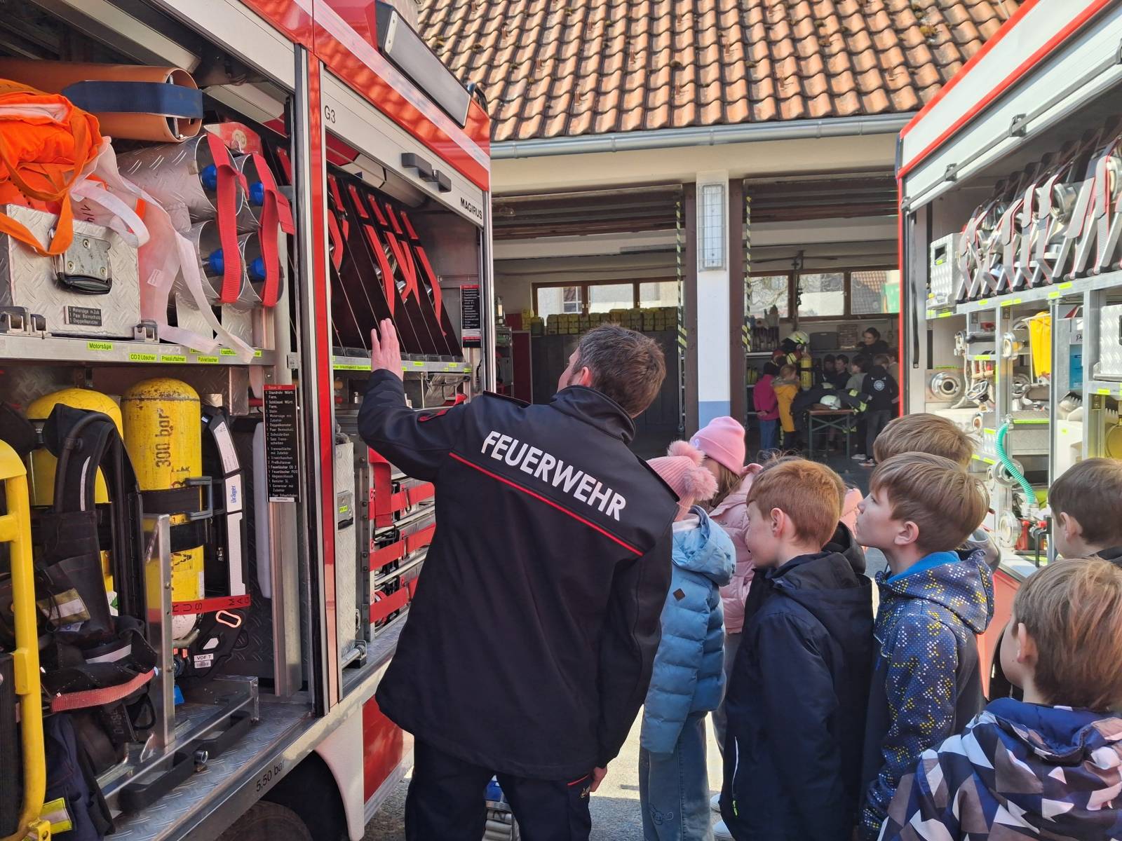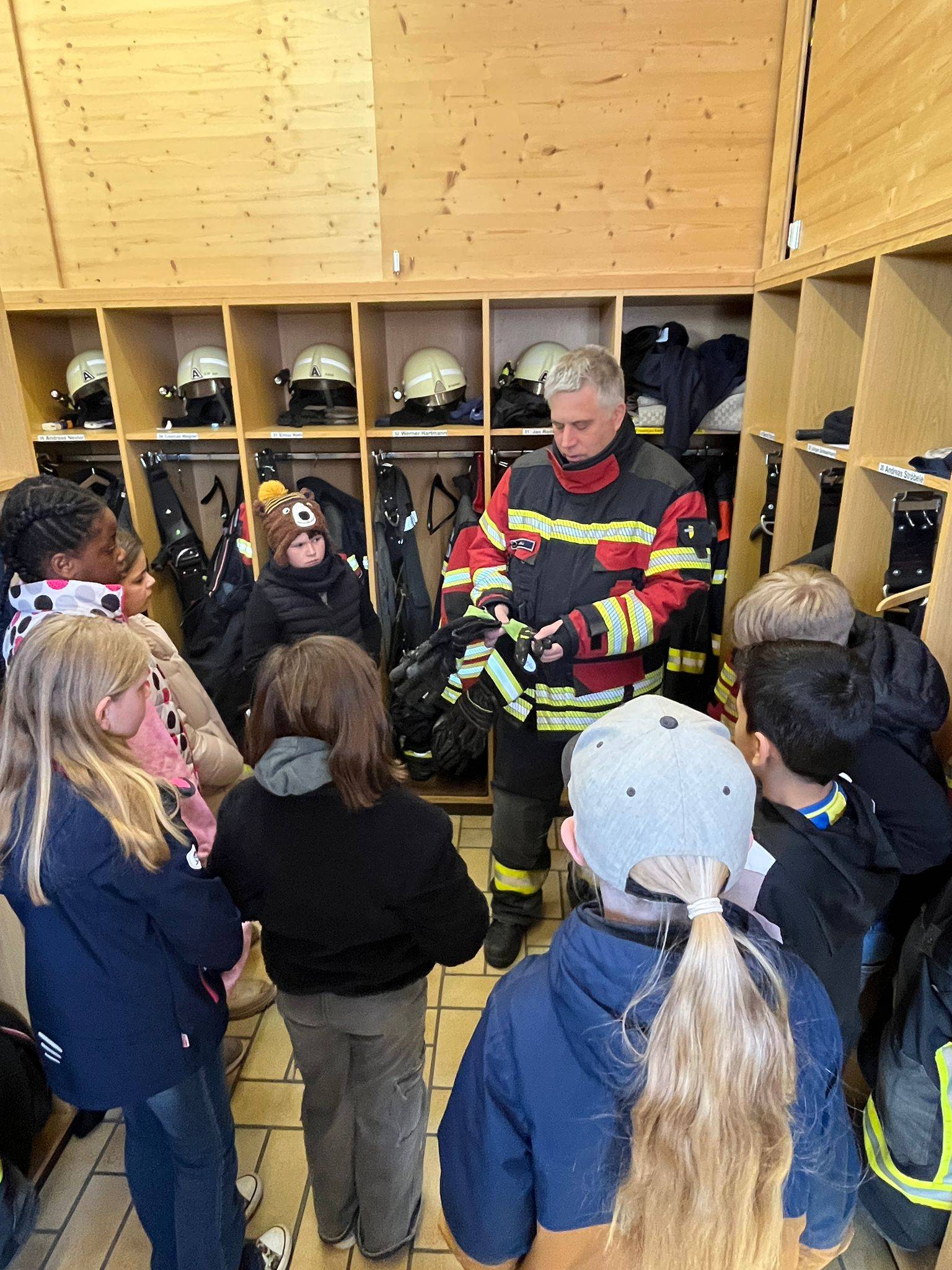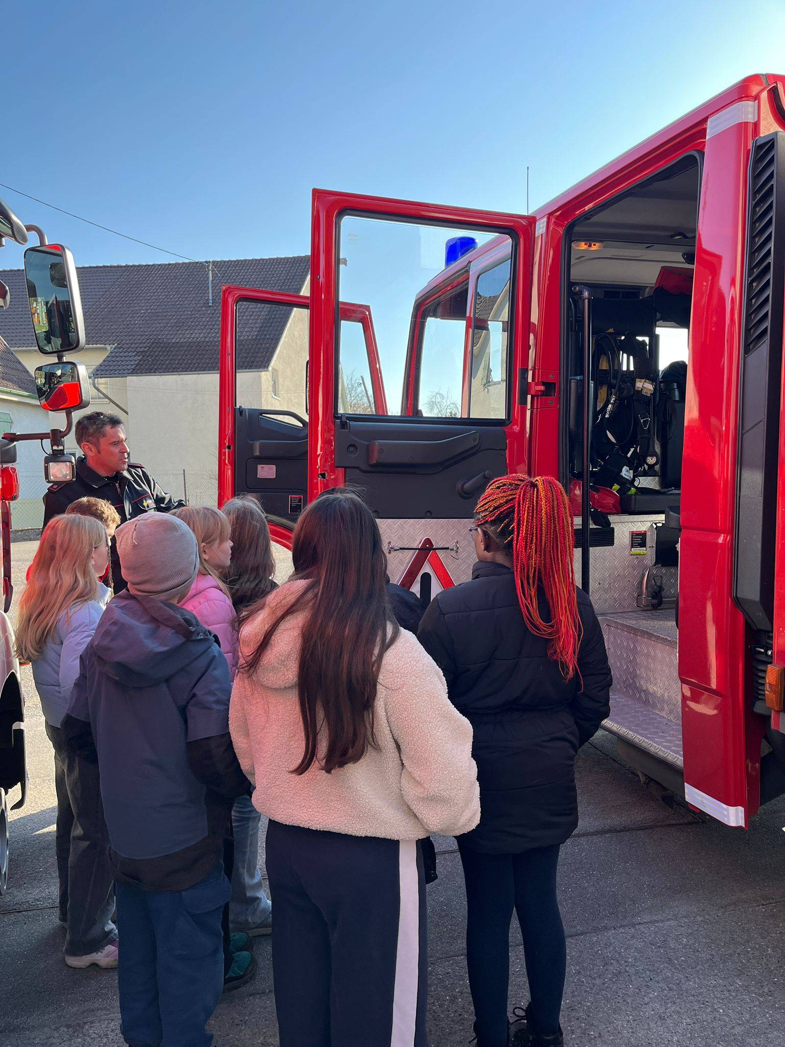 Die dritten Klassen erforschen im Sachunterricht zur Zeit alles rund ums Feuer. Da darf die Feuerwehr natürlich nicht fehlen.
