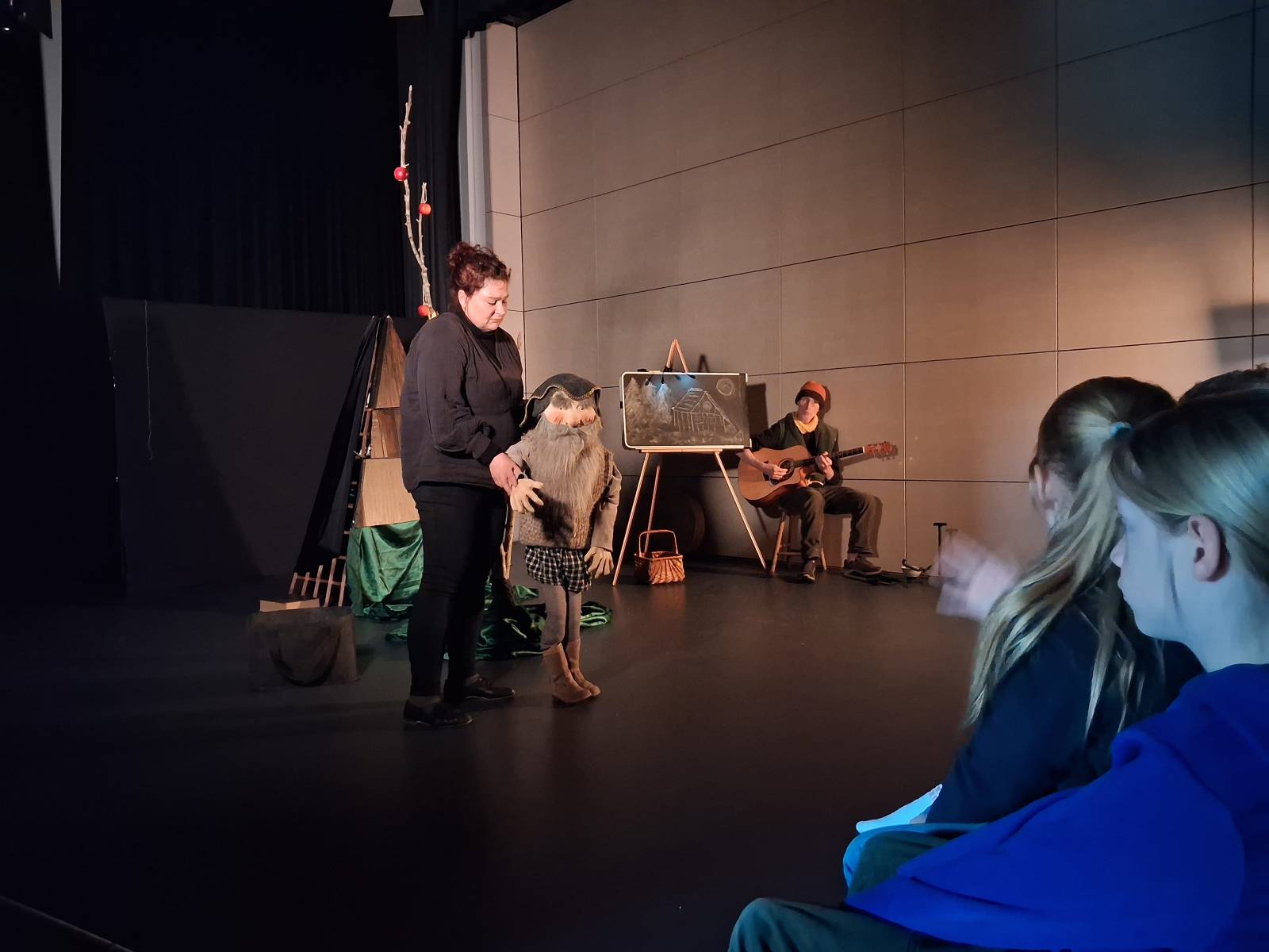 Heute kamen die Dritt- und Viertklässler der GRS in den Genuss einer ganz besonderen Englischstunde: Ihnen wurde die Geschichte von Tom Spindleshanks (in Anlehnung an Astridt Lindgrens „Tomte Tummetott“) auf der schuleigenen Bühne vorgespielt. Dabei gelang es Maxi Fleig (Theaterschaffende aus Rottweil) und Fintan Lucy (irischer Sänger und Songwriter) in einer kindgerechten Mischung aus englischer und deutscher Sprache sowie vielen kreativen, musikalischen und stimmungsvollen Elementen, die Kinder zu begeistern. Es wurde gelacht, gelauscht, den ansprechenden Puppenfiguren zugeschaut und auch selbst mitgemacht. Gemeinsam mussten zum Beispiel englische Wörter herausgefunden und auch ein englisches Lied gesungen werden. Alle waren sich im Anschluss einig: das war ein tolles Erlebnis und beim nächsten Stück wären wir wieder gerne dabei!