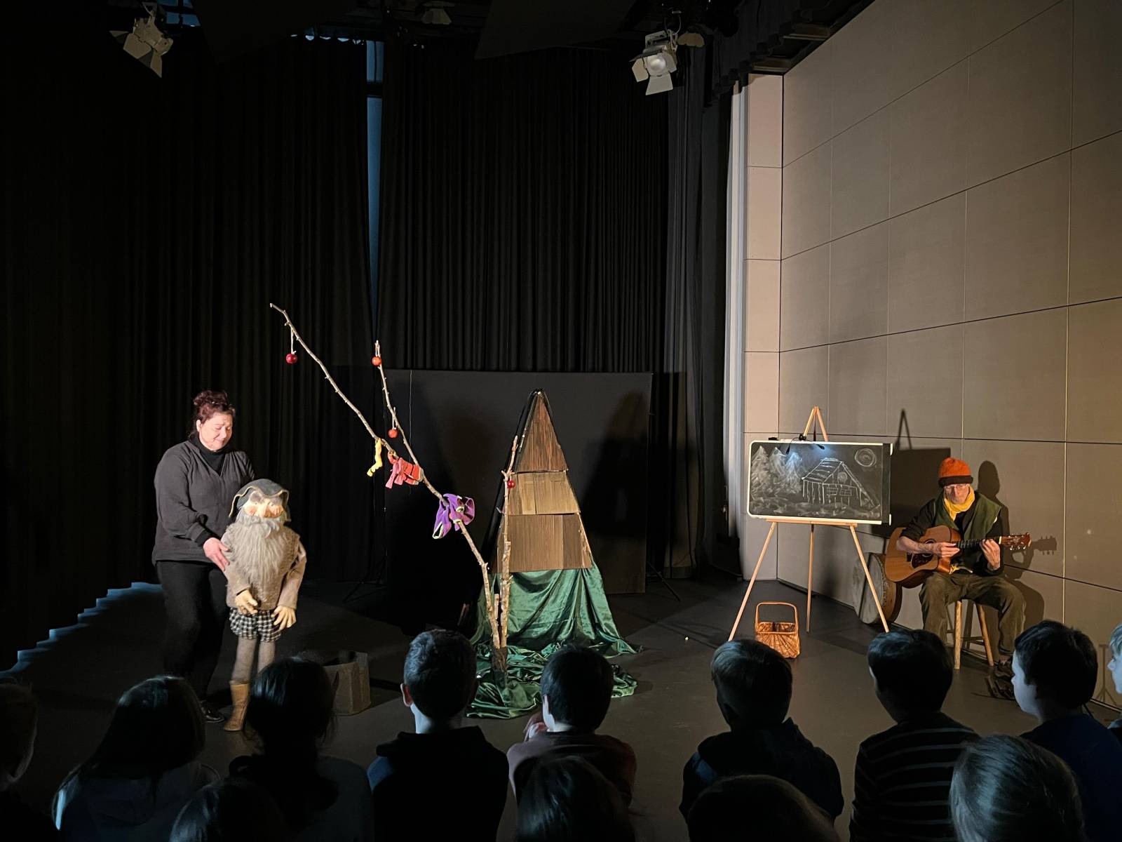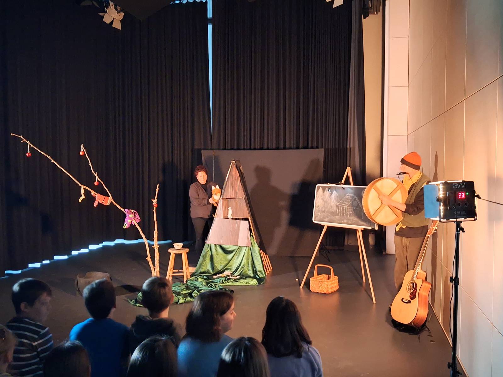 Heute kamen die Dritt- und Viertklässler der GRS in den Genuss einer ganz besonderen Englischstunde: Ihnen wurde die Geschichte von Tom Spindleshanks (in Anlehnung an Astridt Lindgrens „Tomte Tummetott“) auf der schuleigenen Bühne vorgespielt. Dabei gelang es Maxi Fleig (Theaterschaffende aus Rottweil) und Fintan Lucy (irischer Sänger und Songwriter) in einer kindgerechten Mischung aus englischer und deutscher Sprache sowie vielen kreativen, musikalischen und stimmungsvollen Elementen, die Kinder zu begeistern. Es wurde gelacht, gelauscht, den ansprechenden Puppenfiguren zugeschaut und auch selbst mitgemacht. Gemeinsam mussten zum Beispiel englische Wörter herausgefunden und auch ein englisches Lied gesungen werden. Alle waren sich im Anschluss einig: das war ein tolles Erlebnis und beim nächsten Stück wären wir wieder gerne dabei!