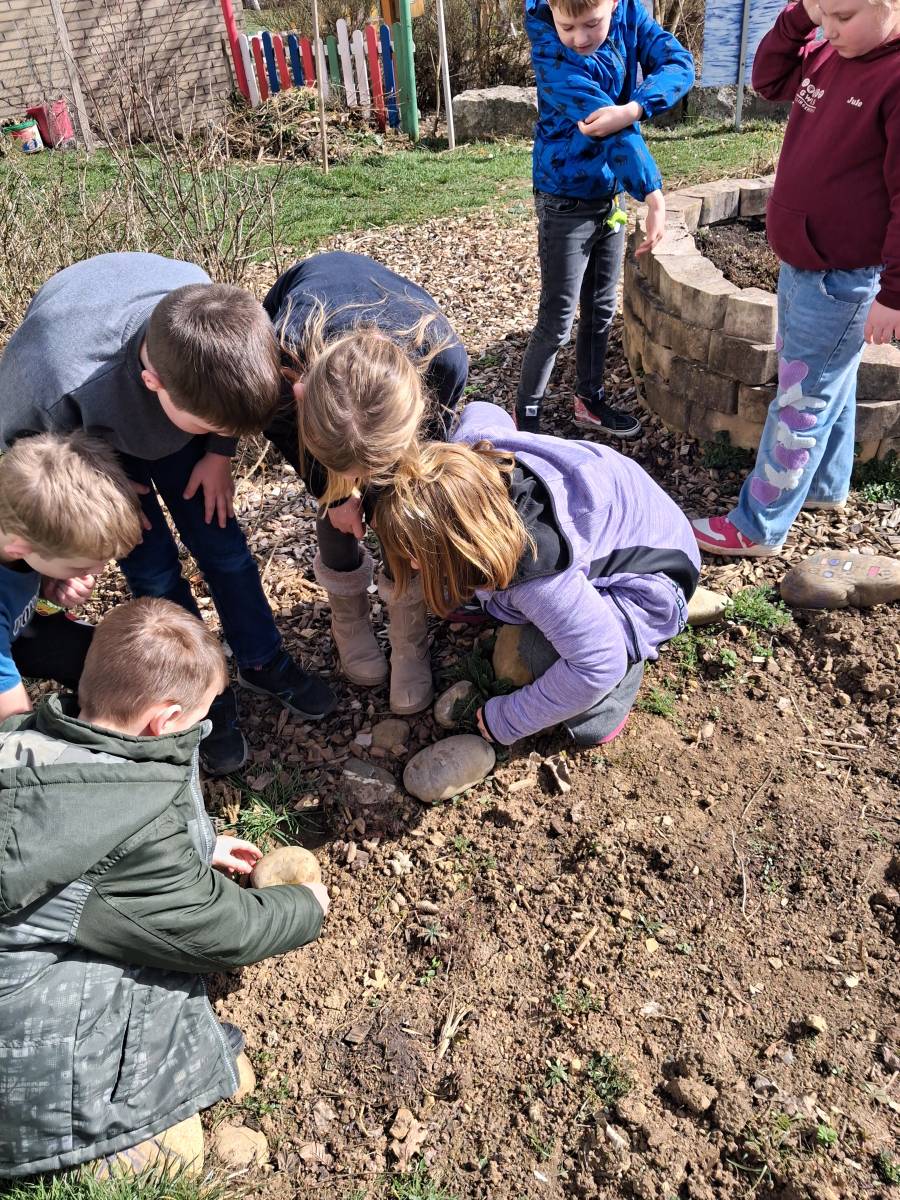 Nachdem sie sich in den letzten Monaten mit den Jahreszeiten, Pflanzenwachstum, Gemüse- und Obstsorten, Tieren im Garten und den verschiedenen gärtnerischen Aufgaben befasst haben, geht es nun endlich wieder raus in den Schulgarten.