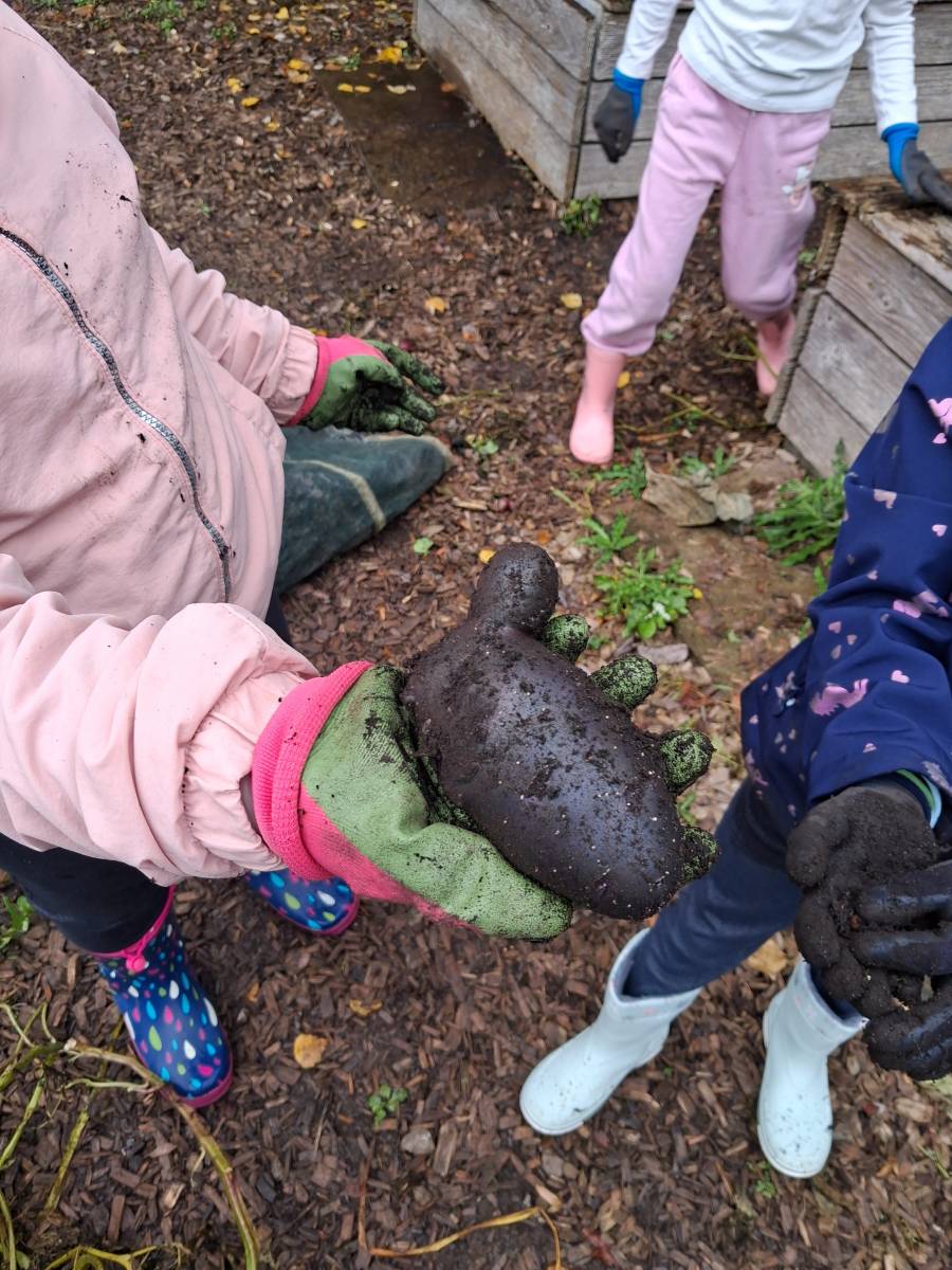 Das Gartenjahr neigt sich langsam dem Ende zu und zur Freude der neuen Gartenklassen konnten noch reichlich Kartoffeln geerntet werden. Stolz wurden zwei Eimer voll „bunter“ Kartoffeln zusammengesammelt. Nun wird der Schulgarten in den nächsten Wochen noch für den Winter vorbereitet und die angehenden Gärtnerinnen und Gärtner widmen sich in dieser Zeit allerlei wichtigen Themen und Grundlagen rund um den Garten: Pflanzenwachstum, Ökosystem, Artenkenntnisse Gemüse und Obst, Wildkräuter, der Garten im Wandel der Jahreszeiten und vieles mehr. Auch eine gemütliche Teestunde mit selbstgeerntetem Kräutertee und kreatives Gestalten mit Naturmaterialien gehören dazu.