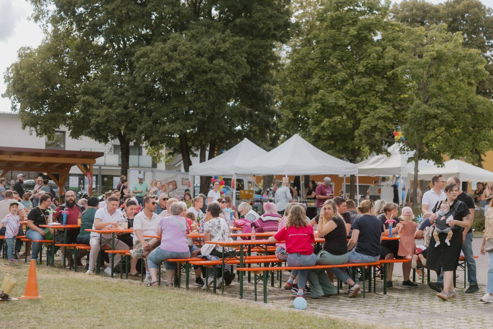 Auch für das leibliche Wohl war an diesem Freitagnachmittag bestens gesorgt. Förderverein und Elternbeirat zeigten wieder einmal ihr herausragendes Engagement und vervollständigten das kulinarische Angebot der Klassen 7 bis 9, sodass es nicht nur im, sondern auch um das Zirkuszelt herum alles gab, was ein richtiger Zirkus so zu bieten hat. Gekühlte Getränke, eine Kuchentheke mit Kaffee und Eis, Slush-Eis, Popcorn, Crêpes und Waffeln durften ebenso wenig fehlen, wie Grillwurst und Pommes. Der ortsansässige Albverein wartete mit seinem selbstgebauten Weinwagen auf und rundete das Gesamtbild ab.