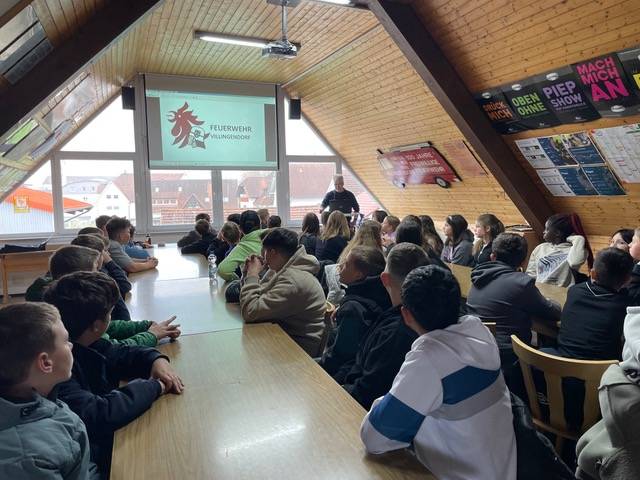 Im Rahmen des Aktionstags zum Katastrophenschutz machte sich die Klassenstufe 6 auf den Weg zur Freiwilligen Feuerwehr in Villingendorf. Dort wurden wir herzlich von Kommandant Robert Flaig begrüßt, der uns freundlich in Empfang nahm und uns durch den Vormittag begleitete.