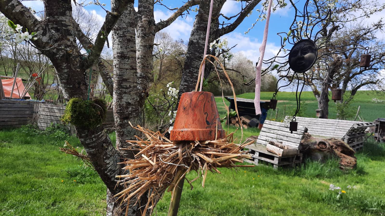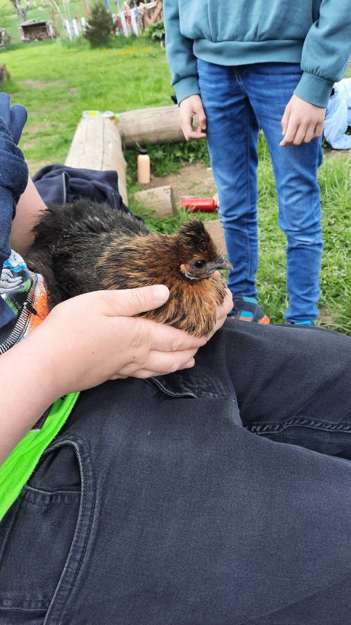 Nachdem die Kinder einiges über die verschiedenen Themenbereiche erfuhren, durften dann auch Triebe geschnitten, Rinden gebürstet und verschiedene Futterstellen aus Naturmaterialien gebastelt werden. Und da der fünfte Jahrgang auch die „Hühnerklasse“ ist, bekamen die herumlaufenden Hühner auch noch eine gehörige Portion Streicheleinheiten.