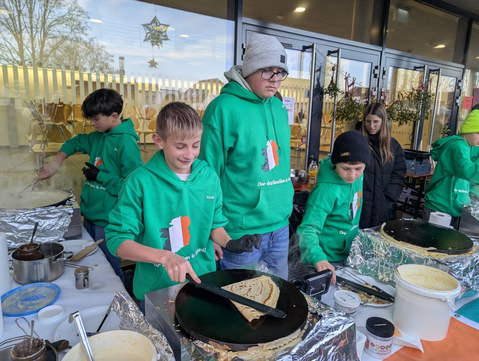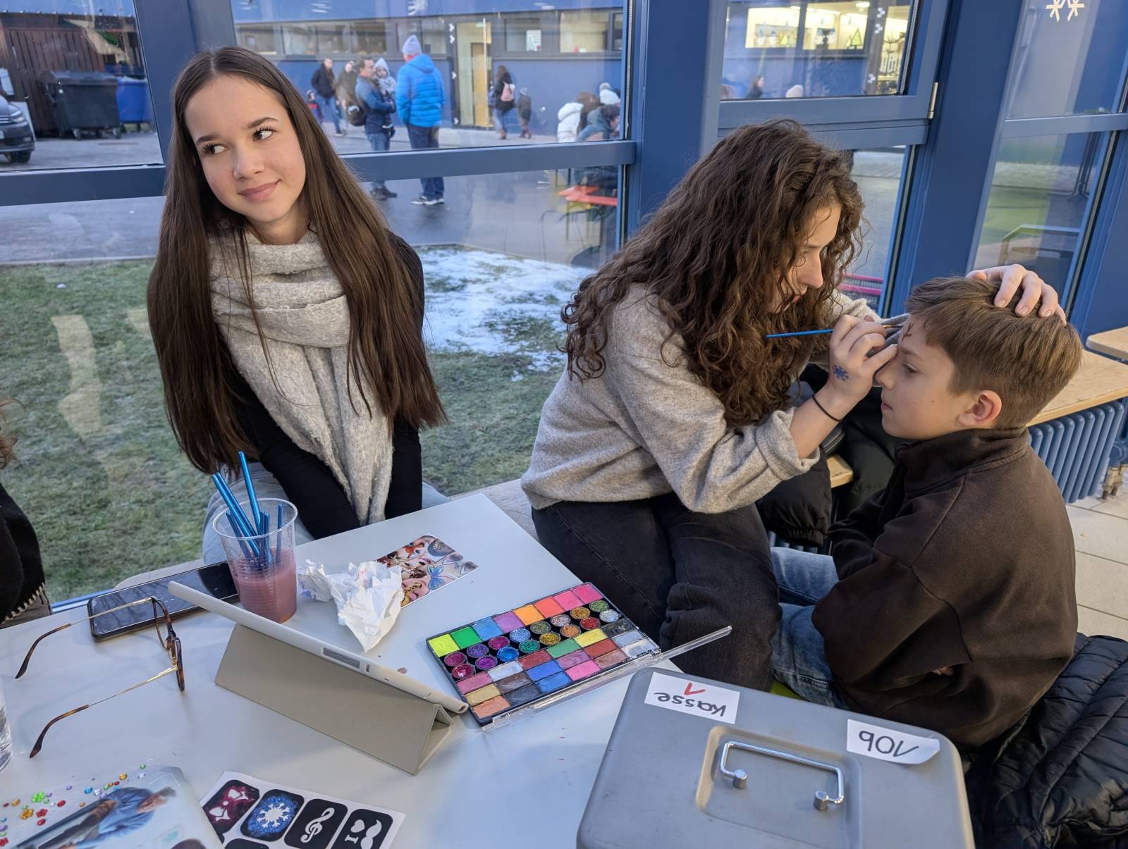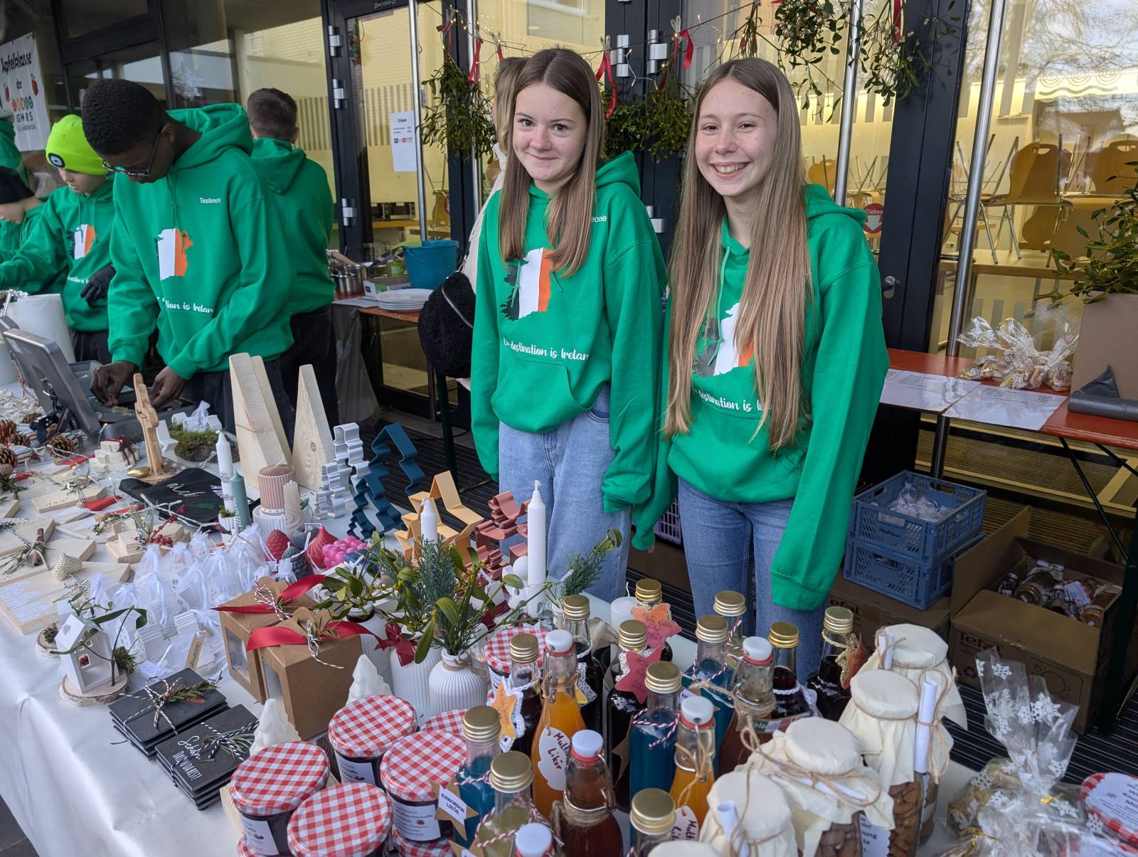 Alle Klassenstufen von 1 bis 10, der Elternbeirat sowie der Schulförderverein beteiligten sich mit Angeboten. Bei leckerer Grillwurst im Wecken, Pommes Frites, Schinken-Käse-Toasts, Hotdogs, Waffeln und Crêpes sowie Glühwein und Punsch wurde in gemütlicher Atmosphäre auf die bevorstehende Adventszeit eingestimmt. Passend dazu konnten tolle Produkte, die in den Klassen entstanden sind, erworben werden. Weihnachtsanhänger aus Salzteig, Sterne aus Papiertüten, Bienenwachskerzen, verschiedene Anhänger, Windlichter, Weihnachtsdekoration, Backmischungen, Bruchschokolade, leckere Marmeladen und vieles mehr wurde von den Schülerinnen und Schülern angeboten. Darüber hinaus bot der Ganztag weihnachtliches Basteln an, die Klassen 10 Kinderschminken und die SMV Glitzertattoos an.