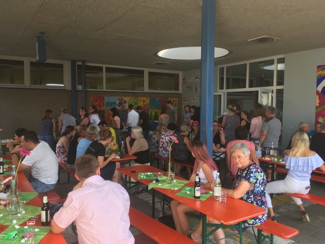 Kurz vor den Sommerferien lud die Schule noch einmal ein. Die zahlreichen Helfer, die sich im zurück liegenden Schuljahr auf die eine oder andere Weise um die Villingendorfer Bildungseinrichtung verdient gemacht hatten, wurden bei schönstem Wetter und mit leckerem Grillgut der Landmetzgerei Digeser und kühlen Getränken verwöhnt. Konrektorin Eugenia Remisch, Schulleiter Rainer Kropp-Kurta und Ganztagsleiterin Jessica Wolff war es ein großes Bedürfnis, den unterschiedlichen Helfern und Unterstützern aus der Elternschaft, dem Förderverein, den Vereinen und betrieblichen Partnern, aber auch der Gemeindeverwaltung, dem Bauhof-Mitarbeitern und dem engagierten Lehrerkollegium von Herzen Danke zu sagen.