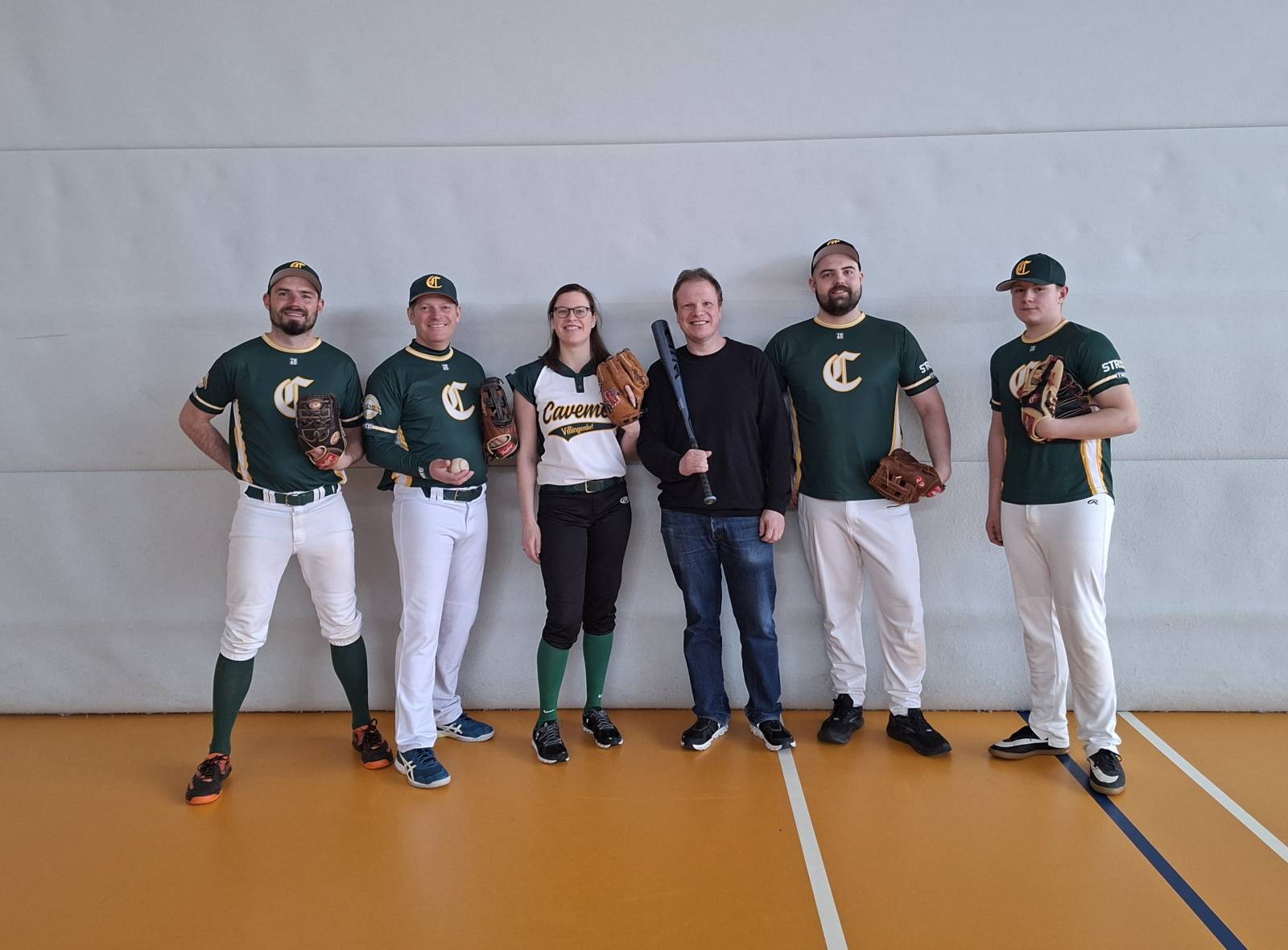 Die „Cavemen“ kamen mit gleich fünf aktiven Trainern aus den Kinder-/Jugend- und Herrenmannschaften, um den Kindern an verschiedenen Stationen die Randsportart Baseball unter fachkundiger Anleitung und mit viel Freude näherzubringen. So durften die Kinder sich zunächst mit Handschuh und Ball ausprobieren sowie die Geschwindigkeit ihres Wurfes messen lassen. Danach wurde in zwei Gruppen ein „echtes Baseballspiel“ in der Halle durchgeführt, bei dem die Kinder schlagen, rennen und im Feld verteidigen durften, was größtenteils schon richtig gut geklappt hat.