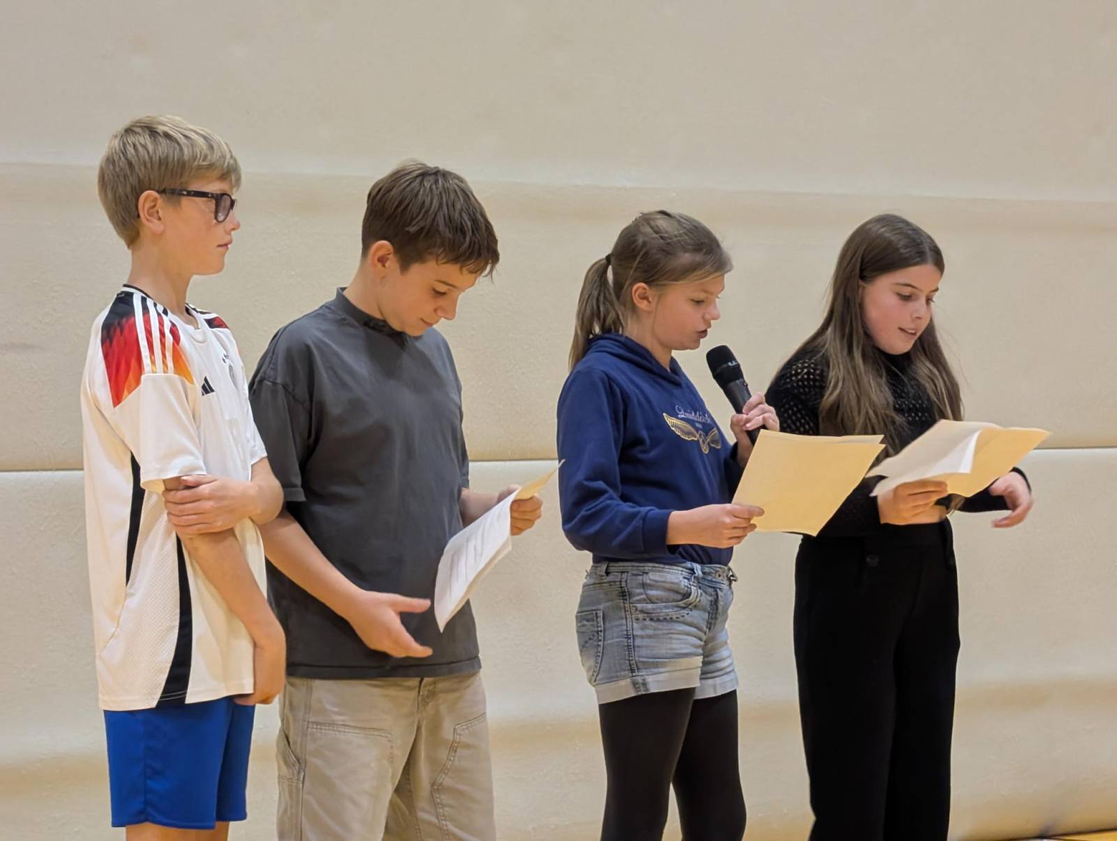 Im Anschluss wurden alle Anwesenden von den Klassenlehrerinnen des fünften Jahrgangs, Annette Hube und Lea Wilbs, herzlich willkommen geheißen. Dem schlossen sich Rektor Markus Fischinger und Konrektorin Eugenia Remisch mit einer herzlichen Begrüßungsrede an.