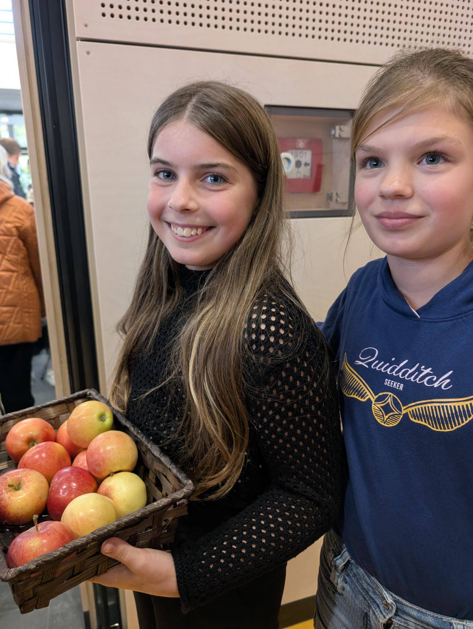 Und auch Schülerinnen und Schüler des sechsten Jahrgangs – der aktuellen Apfelklasse – ließen es sich nicht nehmen, die neuen Mitglieder der Schulgemeinschaft mit einer Apfelgeschichte und einem Apfel zu begrüßen.