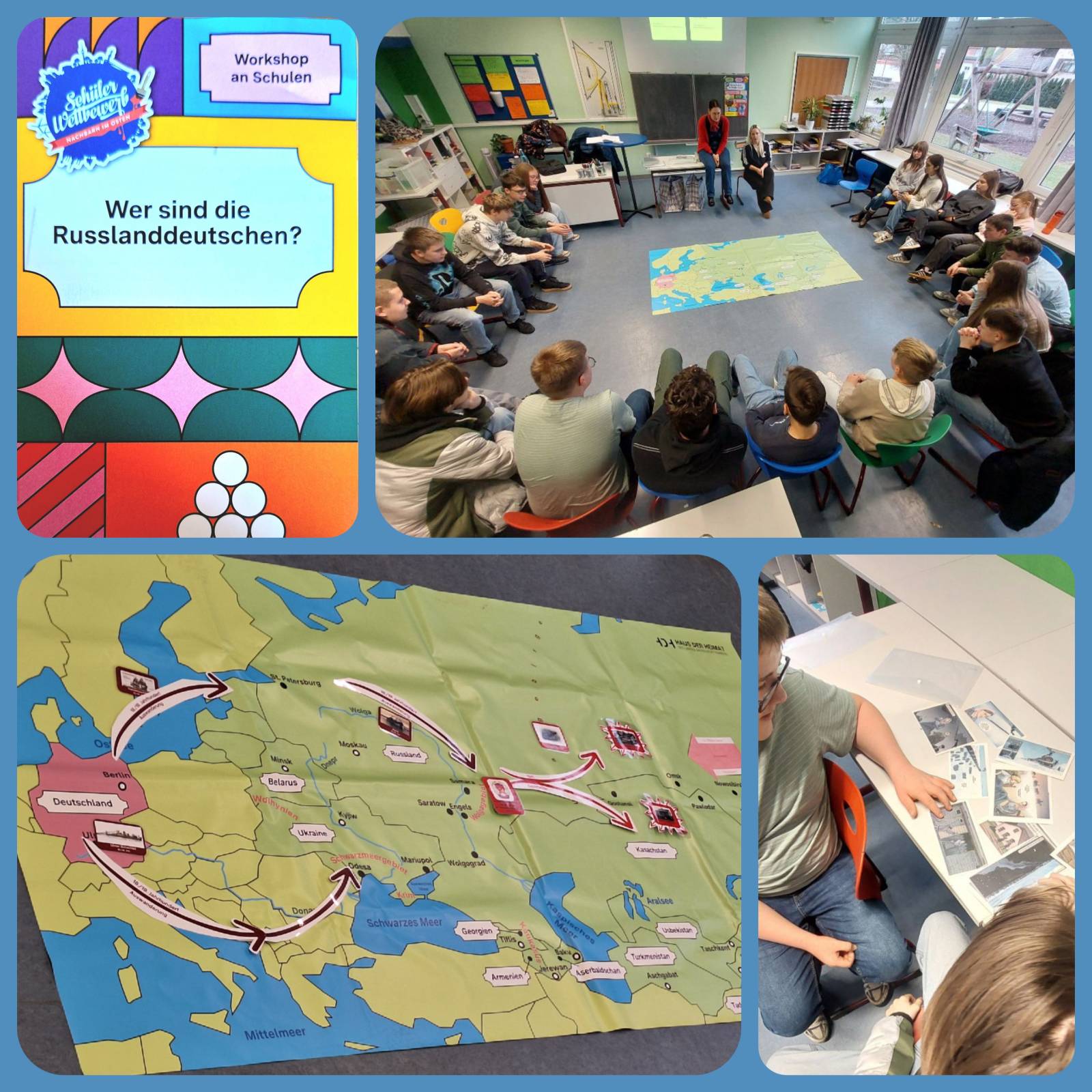 Im lebendigen, 90-minütigen Workshop „Wer sind die Russlanddeutschen“ durften die Schüler die Geschichte der Russlanddeutschen nachverfolgen.  Dabei erfuhren sie Vieles über deren Beweggründe, die dunkle Geschichte der Deportation und Diskriminierung sowie die Entwicklung ihrer Sprache und Identität.