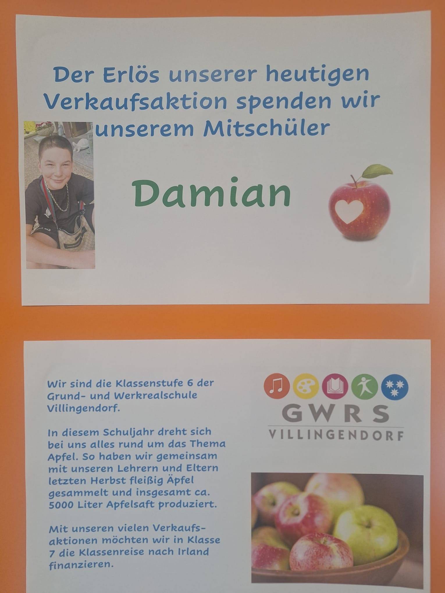 Der gesamte Erlös ging an unseren Klassenkameraden Damian aus Dietingen, der nach einem tragischen Unfall erblindete.