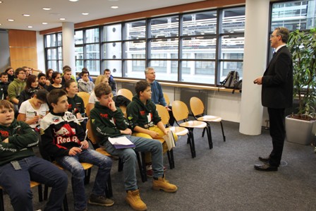 Am nächsten Morgen gab es ein großes Büfett zum Frühstück. Nach dem Frühstück fuhren wir mit der S-Bahn zum Flughafen Stuttgart, wo wir uns mit Herrn Zühlsdorff und den 9. und 10. Klässlern trafen. Herr John, ein Mitarbeiter des Stuttgarter Flughafens, erzählte uns spannende Sachen über den Flughafen. Auch über die vielen Berufe, die am Flughafen vertreten sind, lernten wir viel. Aufschlussreich war auch das Bewerbungsverfahren und so manche Geschichte aus seiner Erfahrung. Danach wurden wir auf dem Flughafengelände herum geführt. Wir durften auf das Rollfeld, mussten aber davor durch die Sicherheitskontrolle. Auch die Flughafenfeuerwehr durften wir bewundern. So machten wir uns gegen 16.00 Uhr auf den Weg nach Hause.