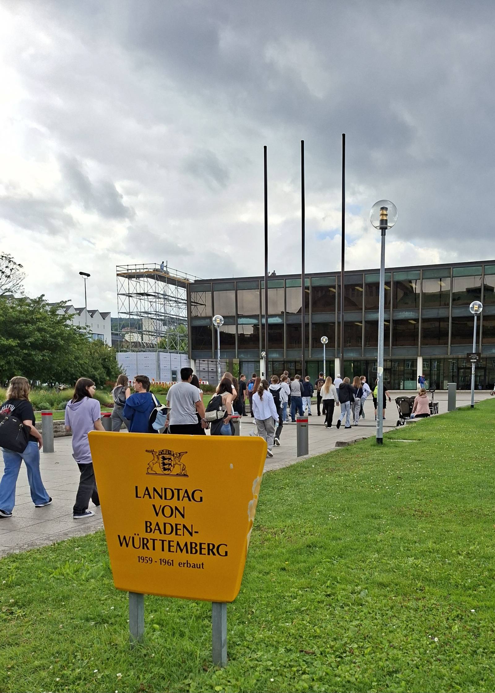 In Klassenstufe 9 sieht das Schulcurriculum der GWRS Villingendorf eine vertiefte Auseinandersetzung mit unserer demokratischen Grundordnung vor. Die Schülerinnen und Schüler (SuS) haben sich im Laufe des Schuljahres ausführlich in die Themen Wahlen, parlamentarische Arbeit und den Gesetzbildungsprozess eingearbeitet und waren vor ein paar Wochen bereits im Europaparlament Straßburg, wo sie an einem Workshop mit Dr. Andreas Schwab (CDU/EVP) teilnehmen durften. Der nächste Schritt führte die „Neuner“ nun nach Stuttgart. Im Landtag Baden-Württemberg standen die nächsten Direktbegegnungen an. In knapp einem Jahr werden die SuS ihr erworbenes Wissen, ihre Erkenntnisse und Erfahrungen während eines weiteren Arbeitsbesuchs einbringen, diesmal in der Bundehauptstadt Berlin im Rahmen einer Exkursion zum Bundestag.
