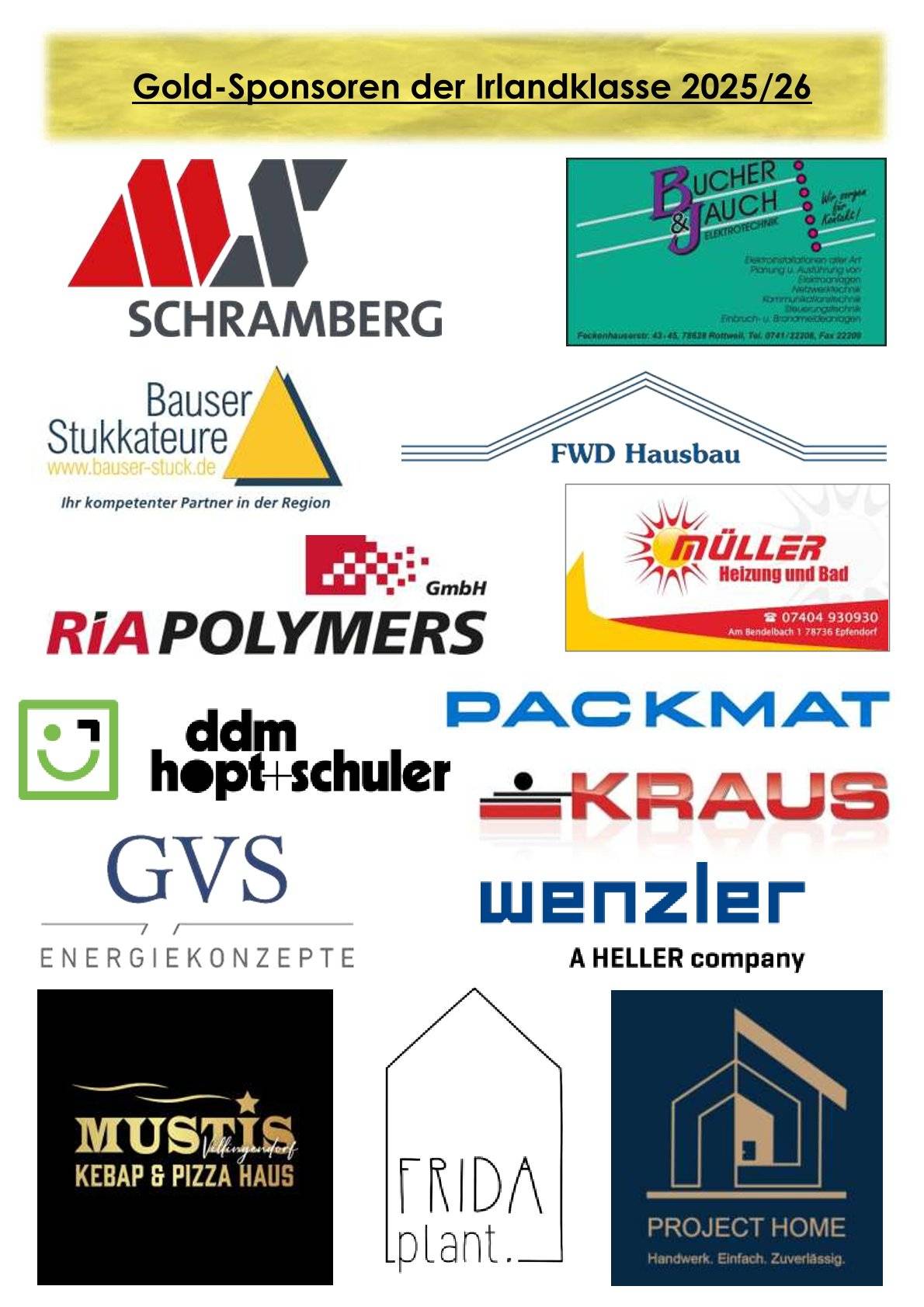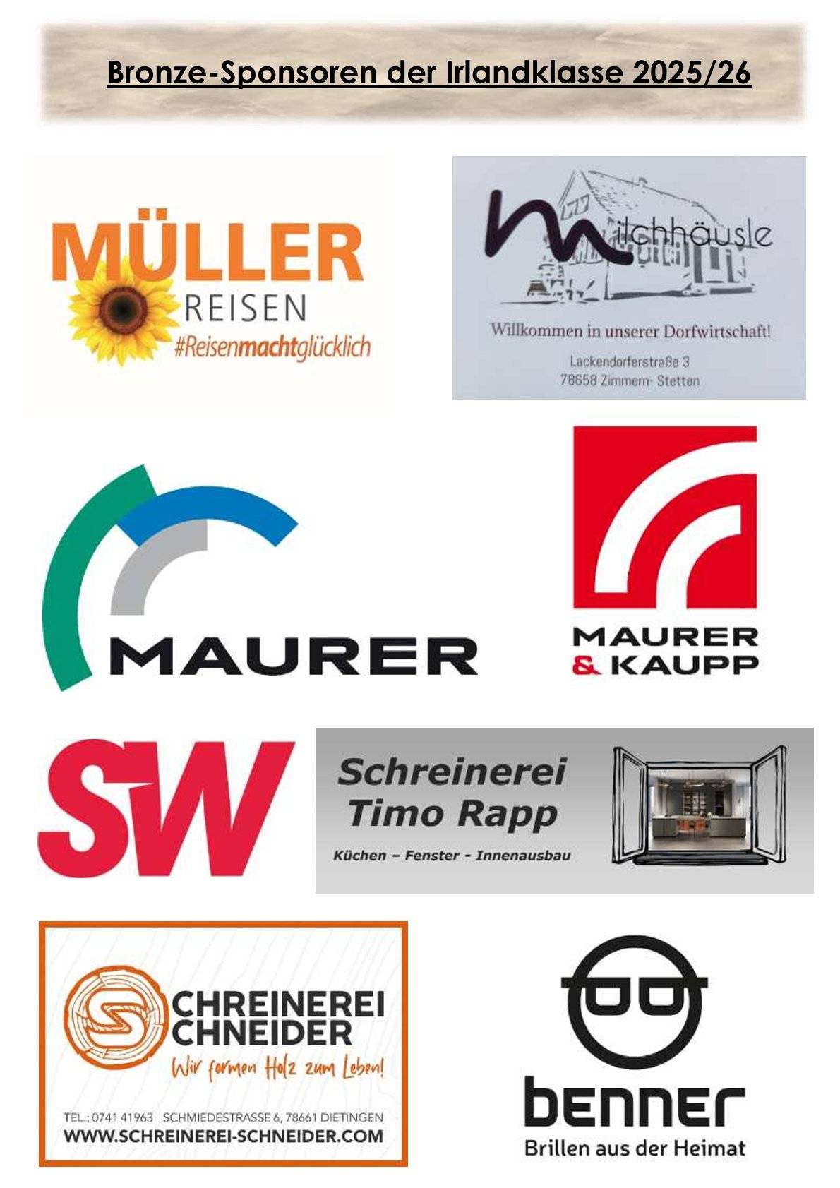 Die Irlandklasse 2025/26 bedankt sich ganz herzlich bei den zahlreichen Sponsoren für die Unterstützung auf dem Weg nach Irland.