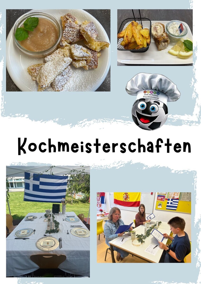 Die Kochmeisterschaft finden alle zwei Jahre statt, passend zur Weltmeisterschaft oder Europameisterschaft und verbindet so kulinarischen Wettkampf mit dem Flair eines internationalen Sportevents. Bei der Kochmeisterschaft treten verschiedene Schülergruppen in einem spannenden Wettkampf gegeneinander an. Jede Gruppe hat ein Land ausgewählt und kocht landestypische Gerichte, die sie mit viel Kreativität und Engagement zubereiten.Die Gruppen kämpfen in der Vorrunde sowie dem Viertel- und Halbfinale um den Einzug ins Finale. Dabei werden unterschiedliche Kriterien wie das Aussehen der Speisen, Geschmack, Kreativität, Küchenorganisation und Tischdekoration bewertet.