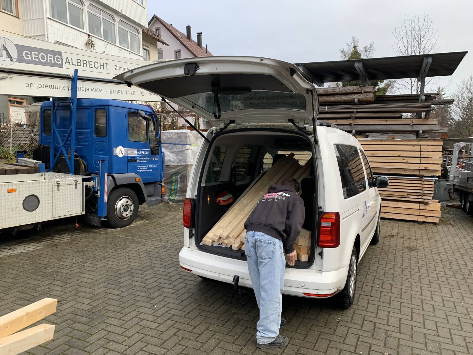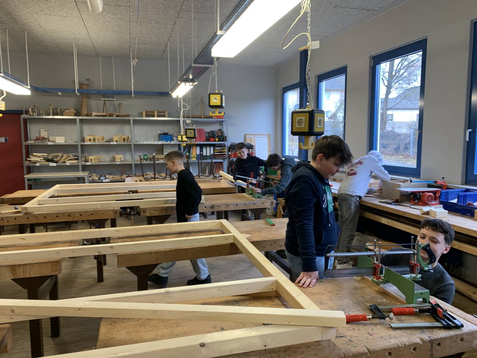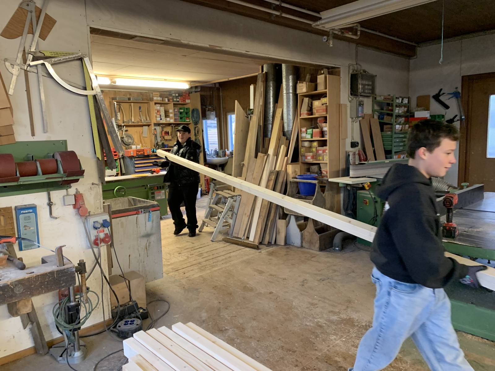 Die Schülerinnen und Schüler des Projekts „Mach was“ sind aktiv beim Herrichten, Ablängen, Transportieren bis hin zum Lagern im Vorbereitungsraum. Mittlerweile sind die Querwände entstanden - dabei waren alle gefordert. Es geht voran!